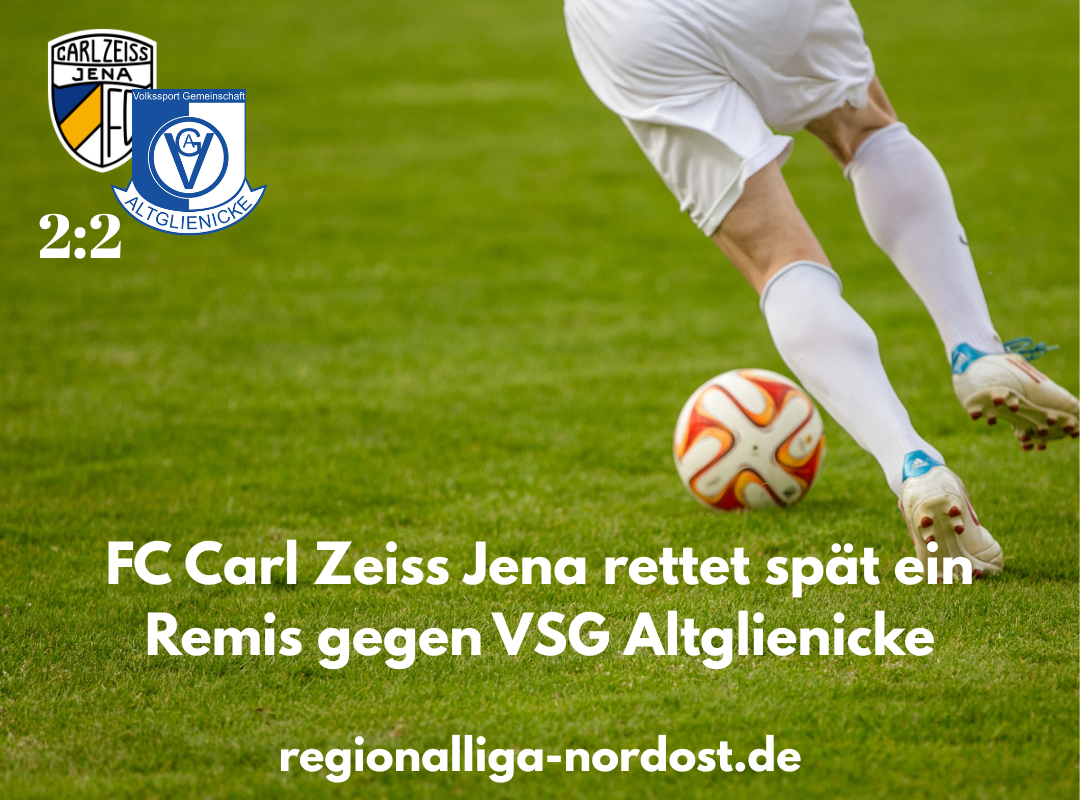 Der FC Carl Zeiss Jena hat sich am Freitagabend in einer packenden Regionalliga-Partie mit 2:2 von der VSG Altglienicke getrennt. Nach einem frühen Rückstand kämpften sich die Thüringer in der Schlussphase eindrucksvoll zurück und sicherten sich dank eines späten Treffers von Doppeltorschütze Tattermusch einen Punkt.